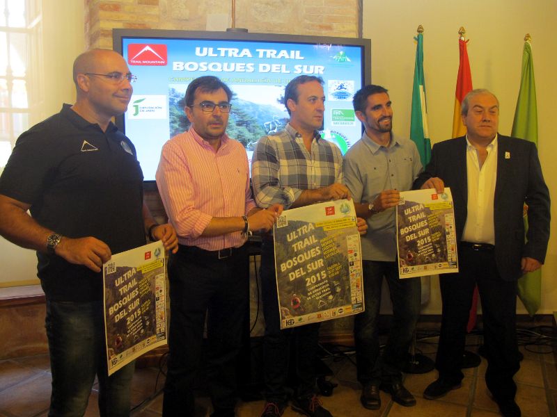 Una nueva edición de la Ultra Bosques del Sur se presenta más apasionante que nunca con el título andaluz en juego y una amplia paticipación de corremontañeros/as llegados desde diferentes países de Europa, además de nuestro país. Más de 350 deportistas de toda España y otros países como Francia, Portugal, Italia y Holanda se congregarán en Cazorla el próximo fin de semana (26 y 27 de septiembre) para tomar parte en la Ultra Trail Bosques del Sur, una exigente carrera por montaña que este año determinará los campeones de Andalucía en esta modalidad deportiva, en la que colaboran de manera permanente con la FAM la Diputación Provincial de Jaén. El diputado de Cultura y Deporte, Juan Ángel Pérez, ha presentado junto al alcalde de Cazorla, Antonio José Rodríguez; el director técnico de la Federación Andaluza de Montañismo, Pablo García; y Miguel Ángel Gutiérrez, del Club Deportivo Trail Mountain, este Ultra Trail Bosques del Sur 2015, evento en el que colabora la Diputación Provincial y que se desarrollará entre los días 26 y 27 de septiembre en el Parque Natural de las Sierras de Cazorla, Segura y Las Villas.