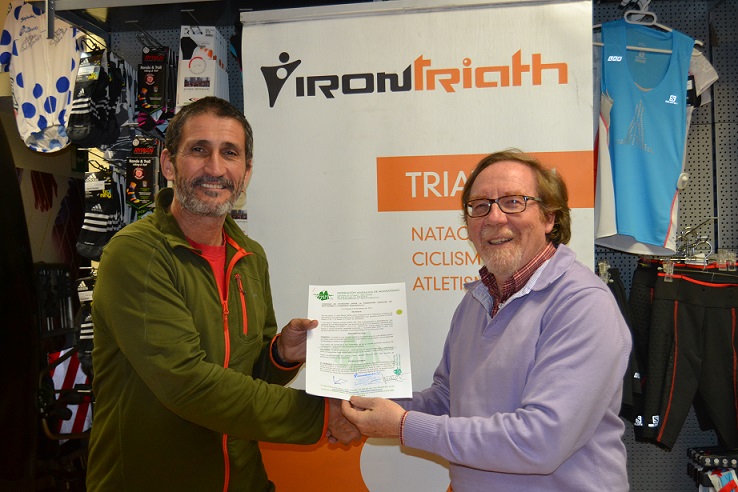 La Federación Andaluza de Montañismo y la empresa malagueña de distribución de material deportivo Irontriah han renovado su acuerdo de patrocinio, rúbrica que se llevó a cabo en las instalaciones de Irontriath en Málaga por parte del presidente de la FAM, Julio Perea Cañas, y el gerente de la empresa Antonio Alonso Guillén del Valle.