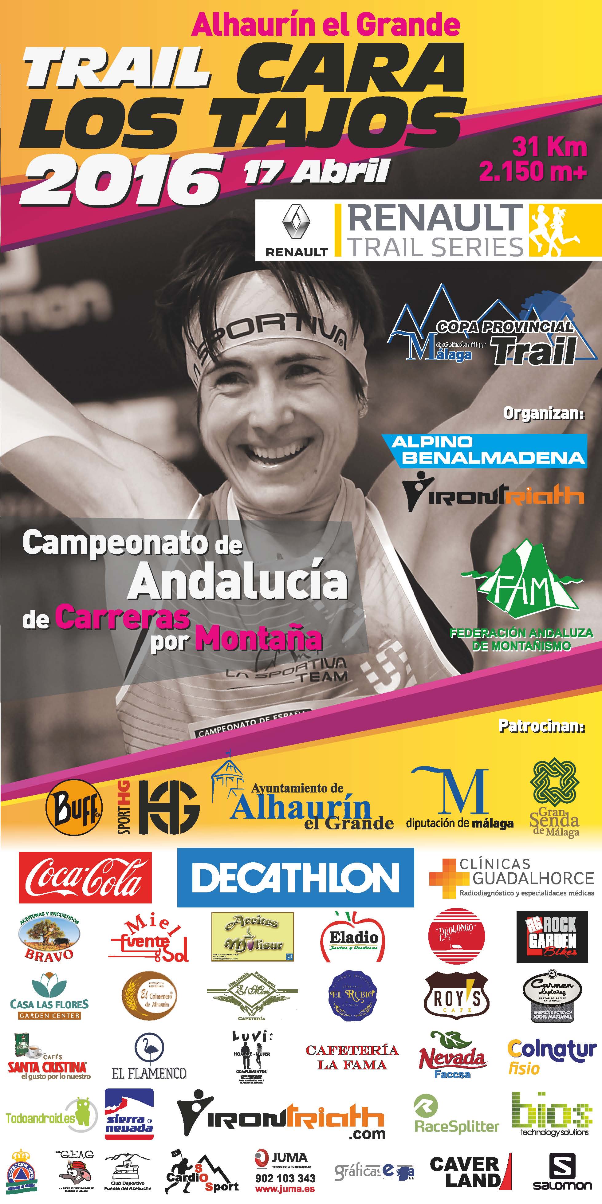 El próximo 17 de abril tendrá lugar el Campeonato de Andalucía de Carreras por Montaña con motivo del Trail Cara los Tajos en Alhaurín de la Torre. Aún quedan dos días para que los clubes también inscriban sus equipos para dicha competición. La prueba consta de 32 kilómetros y 2.150 metros de desnivel positivo, una competición exclusiva para equipos formados por miembros de Clubes afiliados a la FAM y por tanto, para deportistas con licencia FEDME o FAM expedida por la Federación Andaluza de Montañismo el año en curso, y siguiendo estos requisitos y normativa vigente.