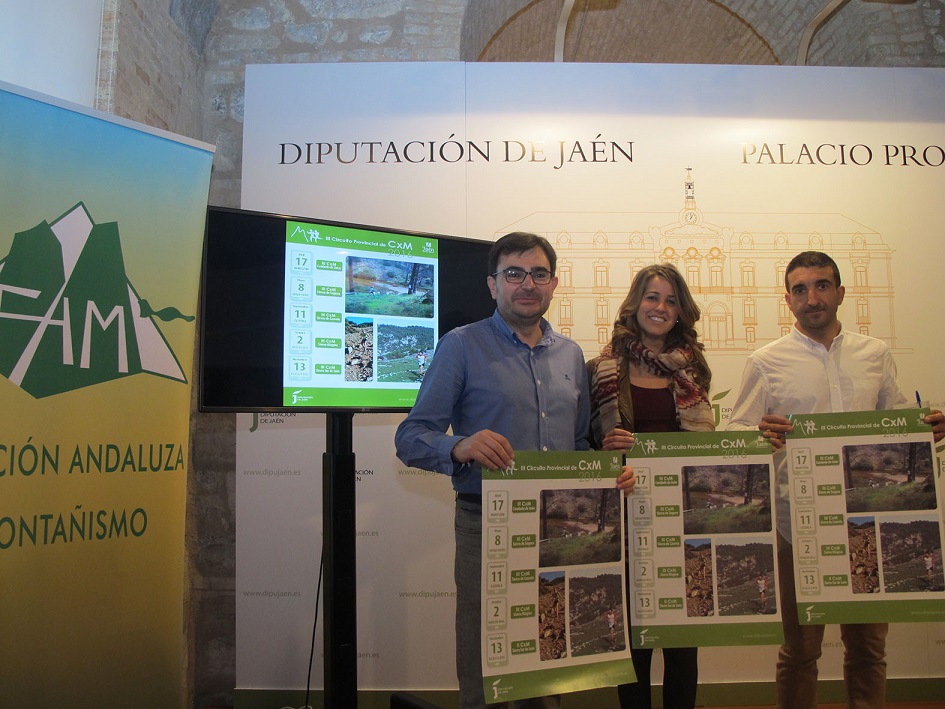 La tercera edición del Circuito de Carreras por Montaña CXM 2016 que organiza la Diputación Provincial de Jaén en colaboración con la Federación Andaluza de Montañismo, los ayuntamientos y las asociaciones de desarrollo rural ha registrado hasta el momento más de 220 inscripciones. El diputado de Cultura y Deportes, Juan Ángel Pérez, ha presentado junto a la concejala de Deportes del Ayuntamiento de Cazorla, Nuria Serrano, y el director deportivo de la Federación Andaluza de Montañismo, Carlos Gómez, este campeonato que se compondrá de un total de 5 pruebas y dará comienzo el próximo domingo, 17 de abril.