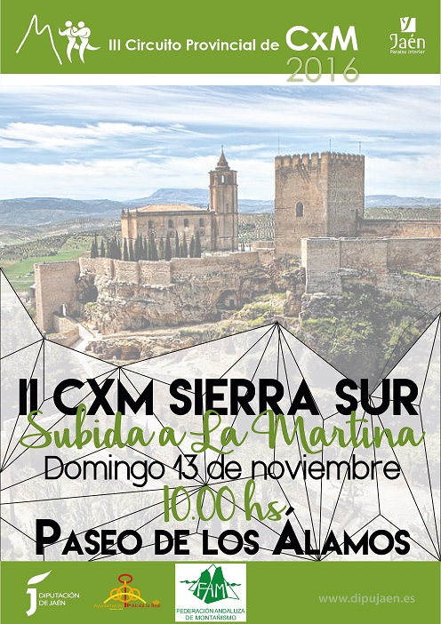 El Ayuntamiento de Alcalá la Real, con la colaboración de la Diputación de Jaén, a través del Área de Cultura y Deportes, La Asociación de Desarrollo Rural de la Comarca Sierra Sur ADSUR y la Federación Andaluza de Montañismo, organiza la 2ª Carrera por Montaña "Sierra Sur de Jaén" (Subida a la Martina), prueba puntuable en el 3º Circuito Provincial de Carreras por Montaña.