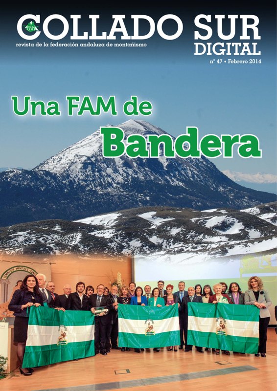 En este número que se presentó este pasado 28 de Febrero en el que celebramos el galardón de la Bandera de Andalucía que la Junta ha otorgado a la FAM con motivo de su 50 Aniversario y su amplia labor desarrollada en el mundo del deporte de la montaña, también detalla las vivencias y más experiencias del cordobés Pedro Ángel Galán, que nos presenta sus próximas cimas y desgrana el pasado 2013. Conoceremos la historia escrita de puño y letra del moronense Juan Antonio Bellido, nuestro bronce en los europeos de Paraescalada 2013, una historia jamás contada. Sabremos los objetivos marcados por el Equipo Andaluz de Carreras por Montaña, aún por definir en su totalidad, pero con la mirada puesta en el Campeonato de España, como asegura el seleccionador Pedro Gámez. Conoceremos las actividades del Comité de Mujer y Montaña, así como nos adentraremos en la Marcha Nórdica. La FAM ha sido pionera en incluir en sus estatutos esta modalidad deportiva.