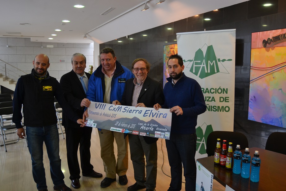 La VIII Carrera por Montaña Sierra Elvira, que en esta edición será Campeonato de Andalucía Individual y por Clubes, organizada por el Club de Atletismo y Montaña de Atarfe, ha sido presentada en el Centro Cultural Medina Elvira de Atarfe con la presencia del presidente de la Federación Andaluza de Montañismo, Julio Perea Cañas, el director técnico de la FAM, Pablo García, el concejal de Cultura de Atarfe, Francisco Pérez, el director de carrera, José Manuel Peula (Club Atletismo Atarfe) y los representantes de las empresas patrocinadoras Cruzcampo (Jesús Luque) y de Coca Cola (Juan Carlos Rodríguez). "Esperamos que esta competición sea el inicio de un nuevo año de éxitos en carreras por montaña para la FAM como lo fue 2014", ha comentado Julio Perea en su alocución.