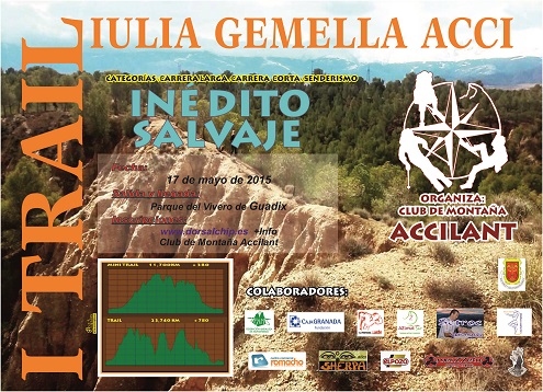 El I Trail Julia Gemella Acci presenta unas distancias de 23'74km y 12km está enmarcada geográficamente en la Hoya de Guadix, al pie de Sierra Nevada. Es un trazado de nivel medio, con un desnivel positivo de 800m en la carrera larga y 400m en la corta, tiene contínuas subidas y bajadas que discurren por caminos, senderos con tramos técnicos pero espectaculares para los amantes de estos deportes debido al paisaje único en la geografía accitana.