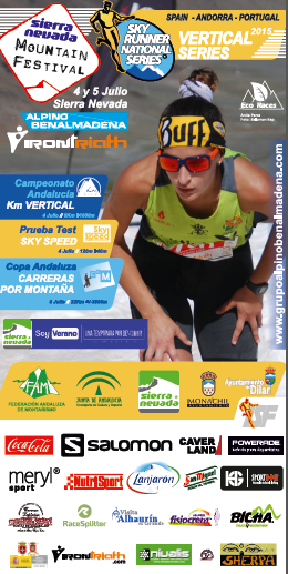 El Grupo Alpino de Benalmádena Irontriath presenta el VI SIERRA NEVADA MOUNTAIN FESTIVAL 2015 que se celebrará en la Estación de Esquí de Sierra Nevada el 4 y 5 de Julio 2015. En esta 6ª Edición la organización mantiene el formato de carreras respecto a la anterior edición, con la salvedad de tener salida contrarreloj para la prueba Kilómetro Vertical.
