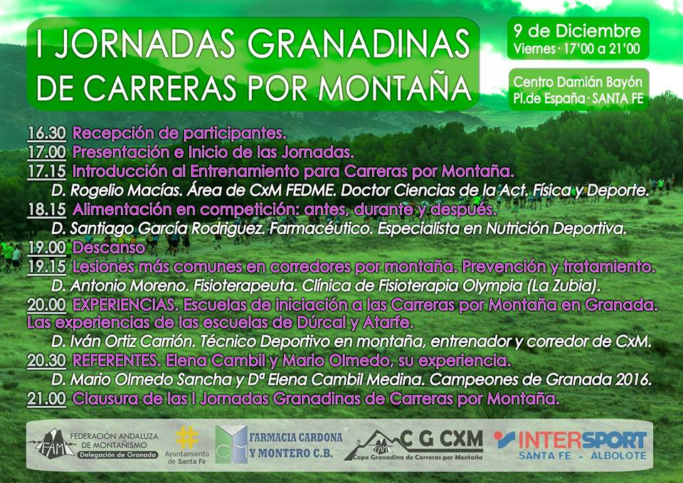 El increíble desarrollo de las carreras por montaña en Granada debe venir paralelo a un mayor conocimiento de esta especialidad en todos los sentidos. En estas jornadas podremos profundizar en temas tan importantes como el entrenamiento, las lesiones o la alimentación en carrera, además de conocer experiencias en aprendizaje y poder conversar con corredores referentes en la provincia.