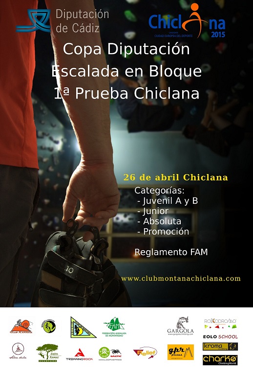Se acerca la fecha para la celebración de la primera prueba de la Copa Diputación de Escalada de Bloque 'Héctor Parra' Club de Montaña Chiclana que se desarrollará en Chiclana el próximo 26 de abril, organizado por el Club de Montaña Chiclana junto con la Federación Andaluza de Montañismo y la colaboración de la Diputación de Cádiz. La prueba está abierta a federados y no federados para las categorías Juvenil A y B, Junior, Absoluta y Promoción. El plazo de inscripción finaliza el próximo 23 de abril.