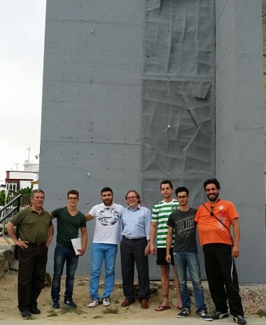 El presidente de la Federación Andaluza de Montañismo, Julio Perea Cañas, junto con el vicepresidente de la misma, José Miguel García de la Torre y el presidente del Club Escalada de Sevilla, Jesús Sánchez, han visitado las obras del rocódromo del Arahal en la Barriada de la Fuente. Los tres estuvieron acompañados por el concejal de Deportes del municipio sevillano, Jonatan Morillas.
