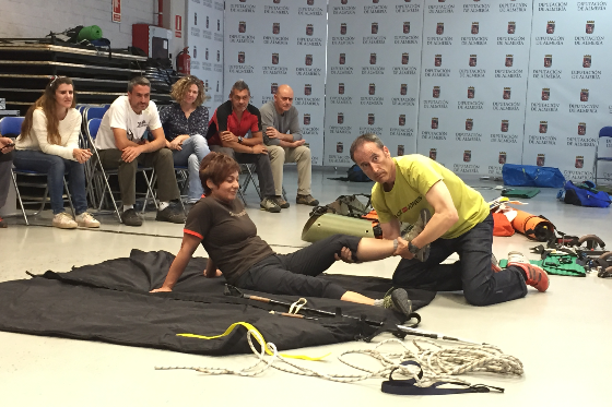 La Delegación de la Federación Andaluza de Montañismo organizó este pasado domingo una jornada de Seguridad en Montaña dentro del programa Montañero Horizontal, una actividad gratuita y sólo para federados en la que participaron 40 participantes de varios clubes de la provincia: Al-Mariyyat, Abejaruco, Almeripol, Cóndor, A Que Atacamos, Adra Aventura, Rumbos Sur, Montenegro, Sherpa. La jornada tuvo lugar en el Pabellón Moisés Ruíz gracias a la colaboración de la Diputación de Almería.