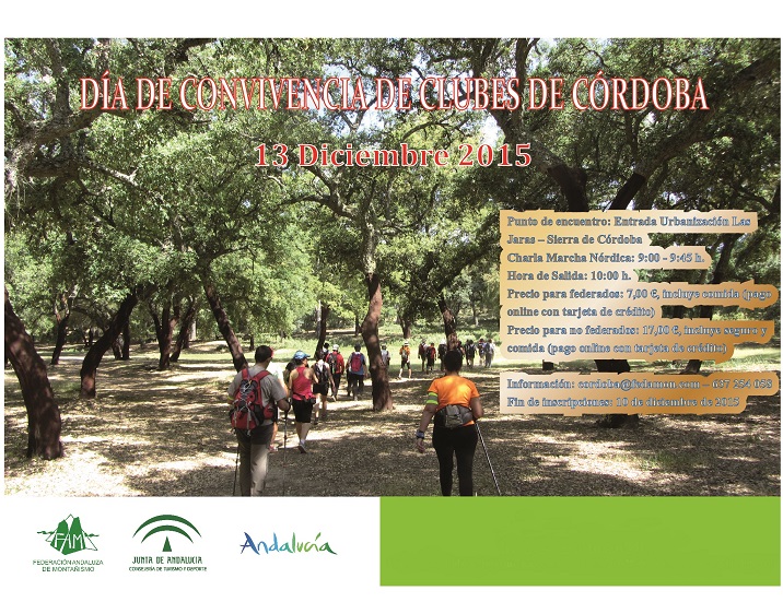 La Federación Andaluza de Montañismo, a través de su delegación territorial en Córdoba, ha organizado para el próximo13 de diciembre de 2015 el Día de Convivencia de Clubes de Córdoba, en el que está prevista una ruta de senderismo.