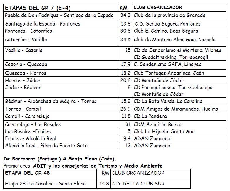 En esta ocasión, en todos los tramos del GR 7 de la provincia, va a haber al menos un club federado que va a realizar una ruta de senderismo y algunos tramos del GR 48.