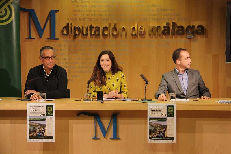 La diputada de Medio Ambiente y Promoción del Territorio de la Diputación de Málaga, Marina Bravo, ha presentado las rutas que se realizarán este año, junto al delegado provincial de la Federación Andaluza de Montañismo, Antonio Calderón, y al director general de Servicios a la Ciudadanía de la Diputación, Germán Gemar