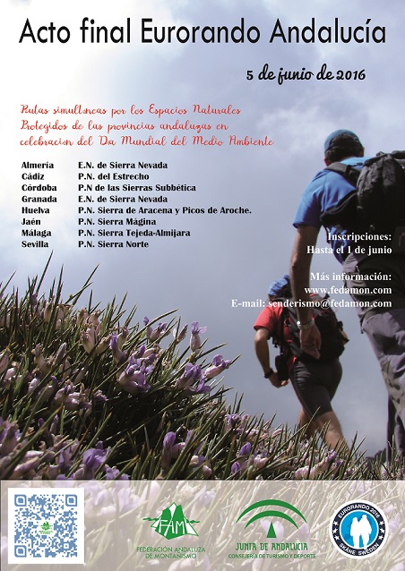 Este domingo, 5 de junio, pasará a la historia de la Federación Andaluza de Montañismo por tener a más 1.200 senderistas en las ocho provincias andaluzas realizando rutas para celebrar el Acto Final del Eurorando-Andalucía 2016 después de las celebraciones desarrolladas entre 2015 y este año.