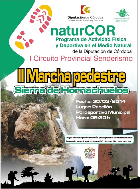 Sigue el I Circuito Provincial de Senderismo de Córdoba, organizado por la Diputación a través del programa 'naturCOR' junto con la Federación Andaluza de Montañismo. La próxima actividad será el Domingo 30 de marzo de 2014, en el municipio de Hornachuelos. Se trata de la II MARCHA PEDESTRE SIERRA DE HORNACHUELOS que discurre por dos senderos señalizados por la Consejería de Medio Ambiente, el Guadalora y el Cordel de la Herrería, este último homologado por la Federación Andaluza de Montañismo como sendero local SL-A 122.