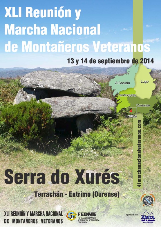 El Club de Montaña Xistra organiza este año 2014 la XLI Reunión y Marcha Nacional de Montañeros Veteranos, un gran reto para un club joven (1991), pero a la vez un gran aliciente. Tendrá lugar en la Serra do Xurés (Ourense), un hermoso enclave natural con un gran patrimonio cultural. Restos prehistóricos y romanos, manantiales termales, junto con hermosas construcciones tradicionales y religiosas, dan al conjunto un gran atractivo turístico. La actividad tendrá lugar los días 13 y 14 de septiembre de 2014, en Terrachán, capital del municipio de Entrimo.