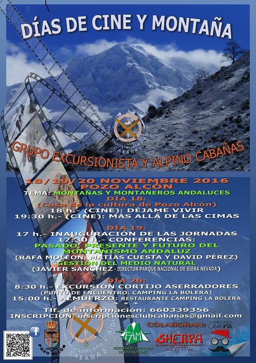 Las II Jornadas de Montaña y Cine organizadas por el Grupo Excursionista y Alpino Cabañas se celebrarán los próximos días 18, 19 y 20 de noviembre en Pozo Alcón (Jaén) con la colaboración de la Federación Andaluza de Montaña y el ayuntamiento de esta localidad.