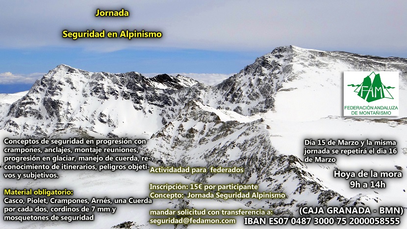 Desde el Comité de Seguridad en Montaña, el Comité de Alpinismo y junto con la EAAM queremos realizar una jornada de seguridad en el alpinismo donde trataremos aspectos que consideramos necesarios para la práctica segura de las distintas actividades en estilo alpino.